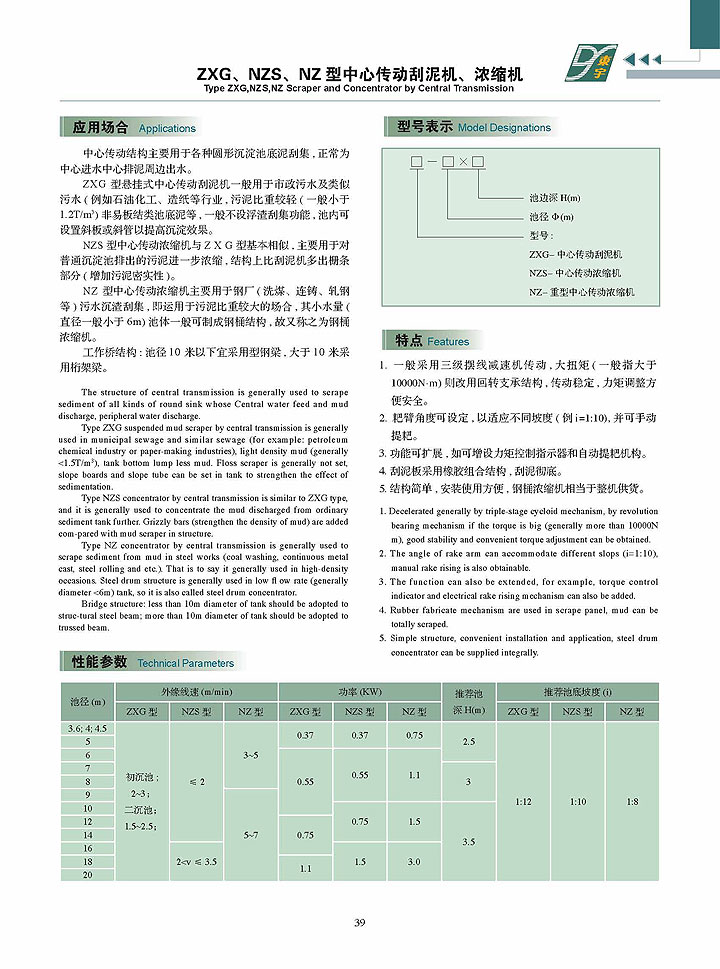 - ZXG、NZS、NZ型中心傳動刮泥機、濃縮機