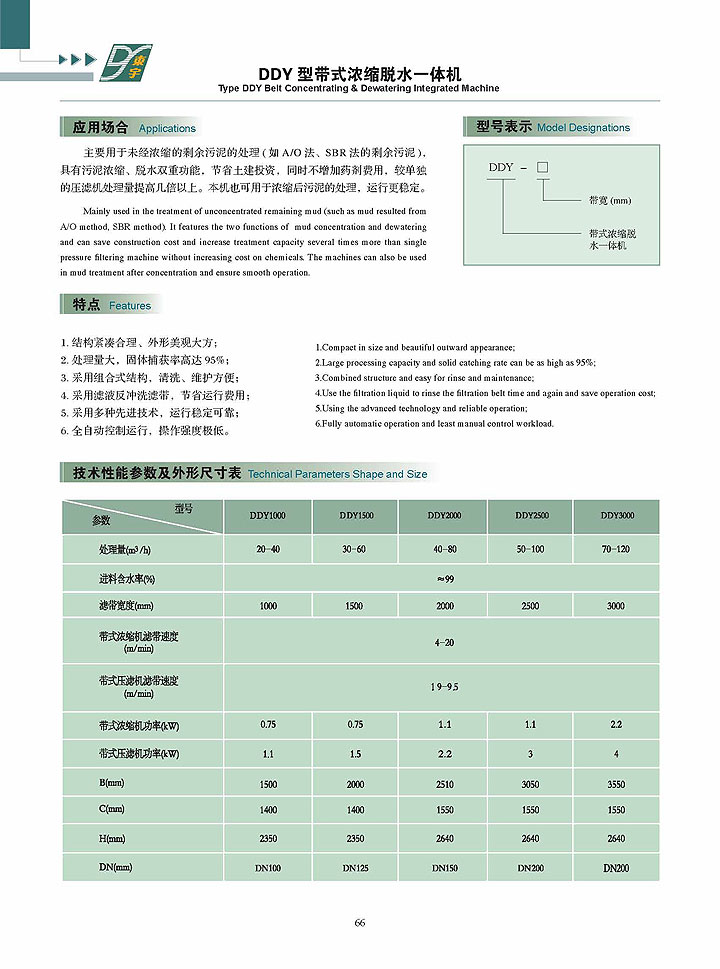 - DDY型帶式濃縮脫水一體機